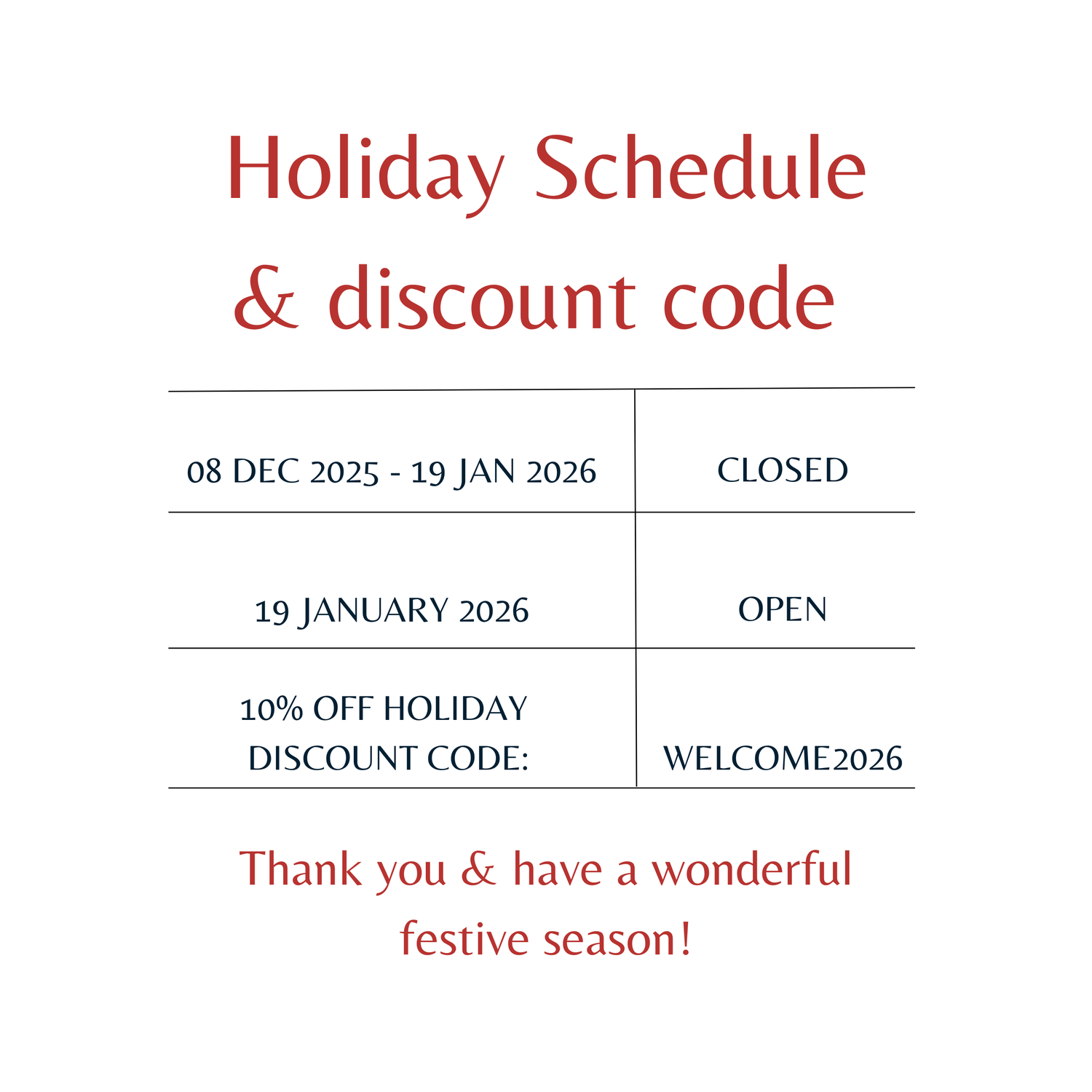 THANK YOU FOR THE INCREDIBLE SUPPORT THROUGHOUT THE YEAR. WE ARE GRATEFUL FOR EVERY ORDER AND EVERY MESSAGE. WISHING YOU A WONDERFUL FESTIVE SEASON AND WE LOOK FORWARD TO CREATING FOR YOU AGAIN IN 2026.