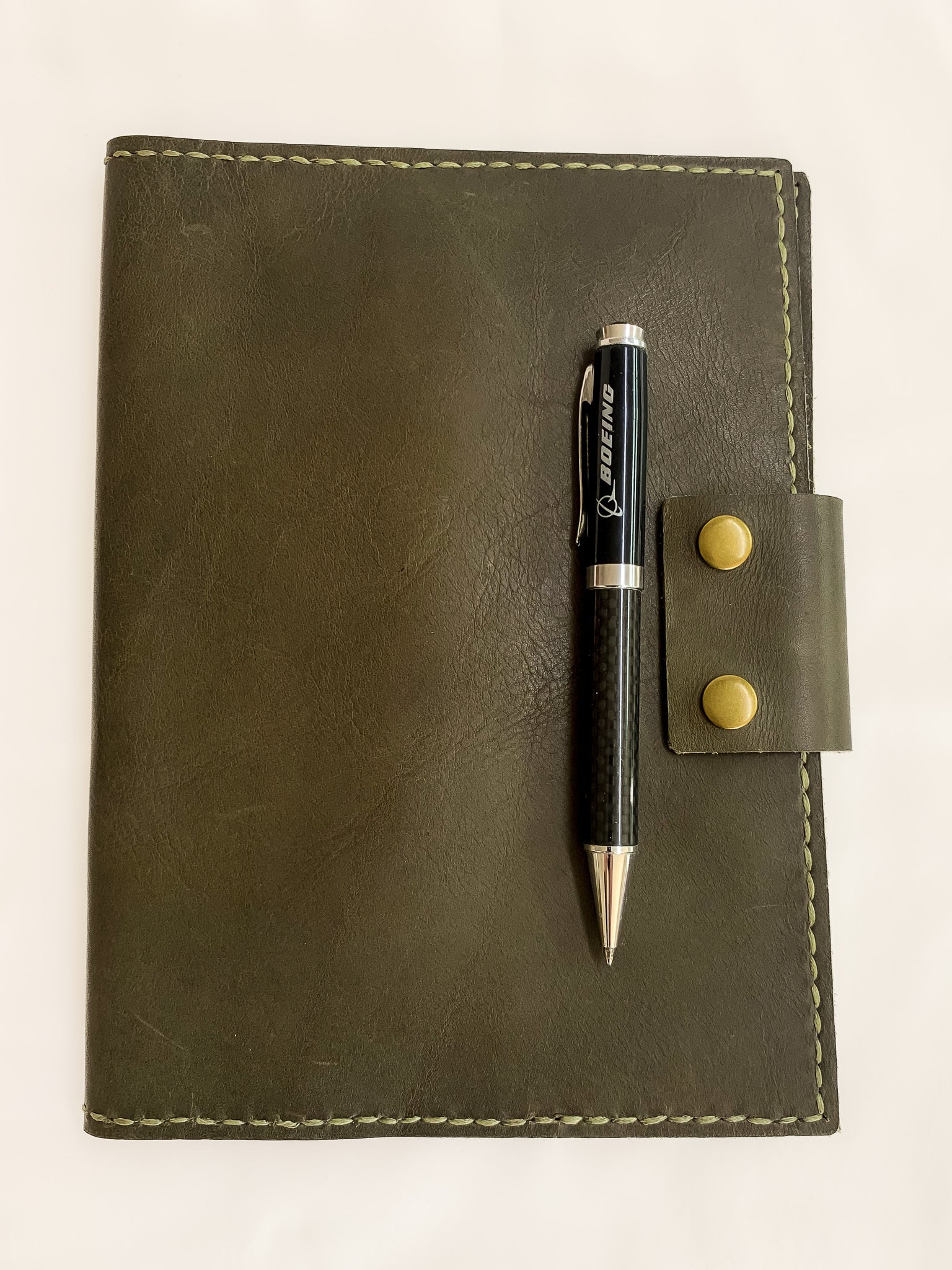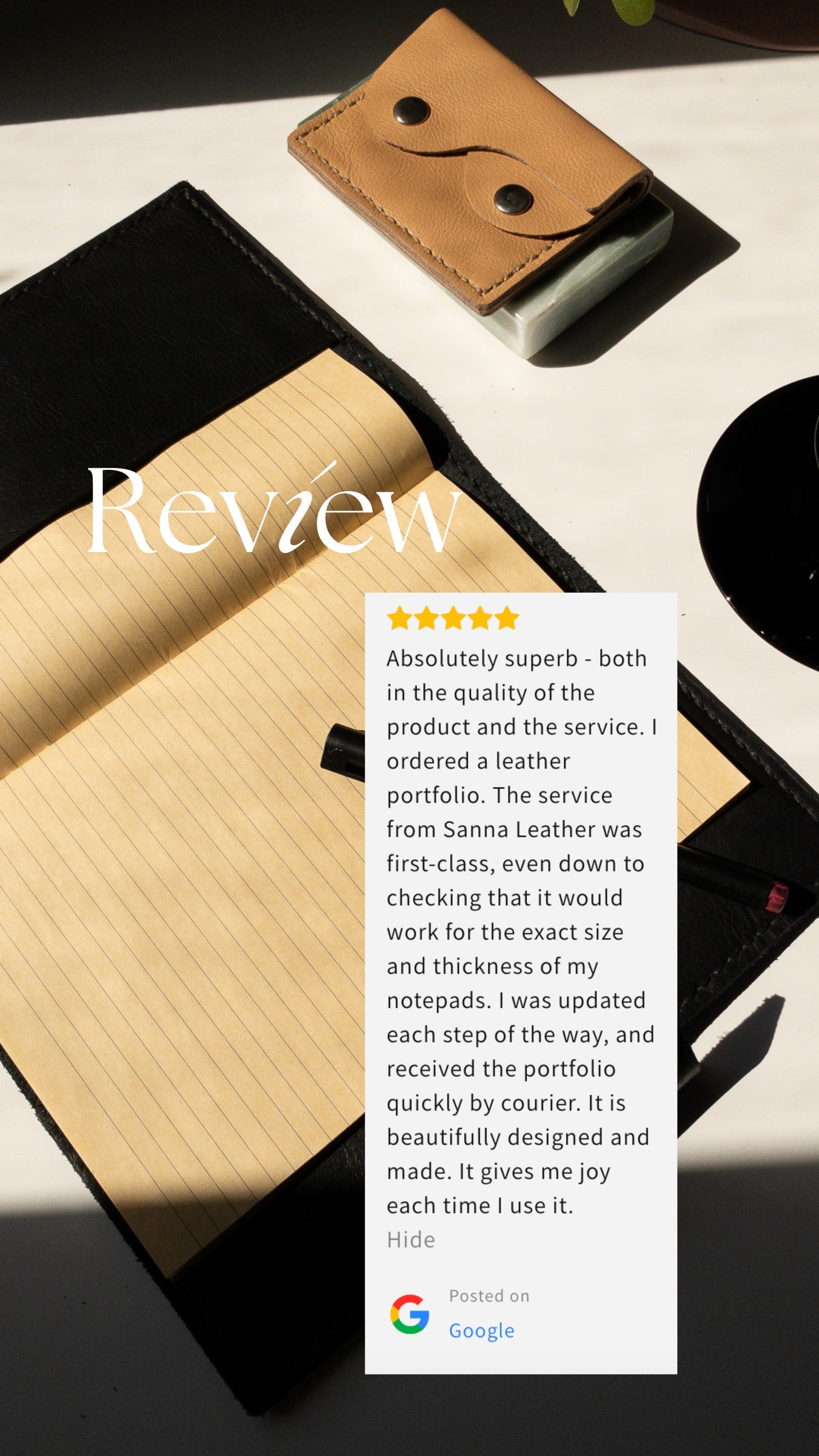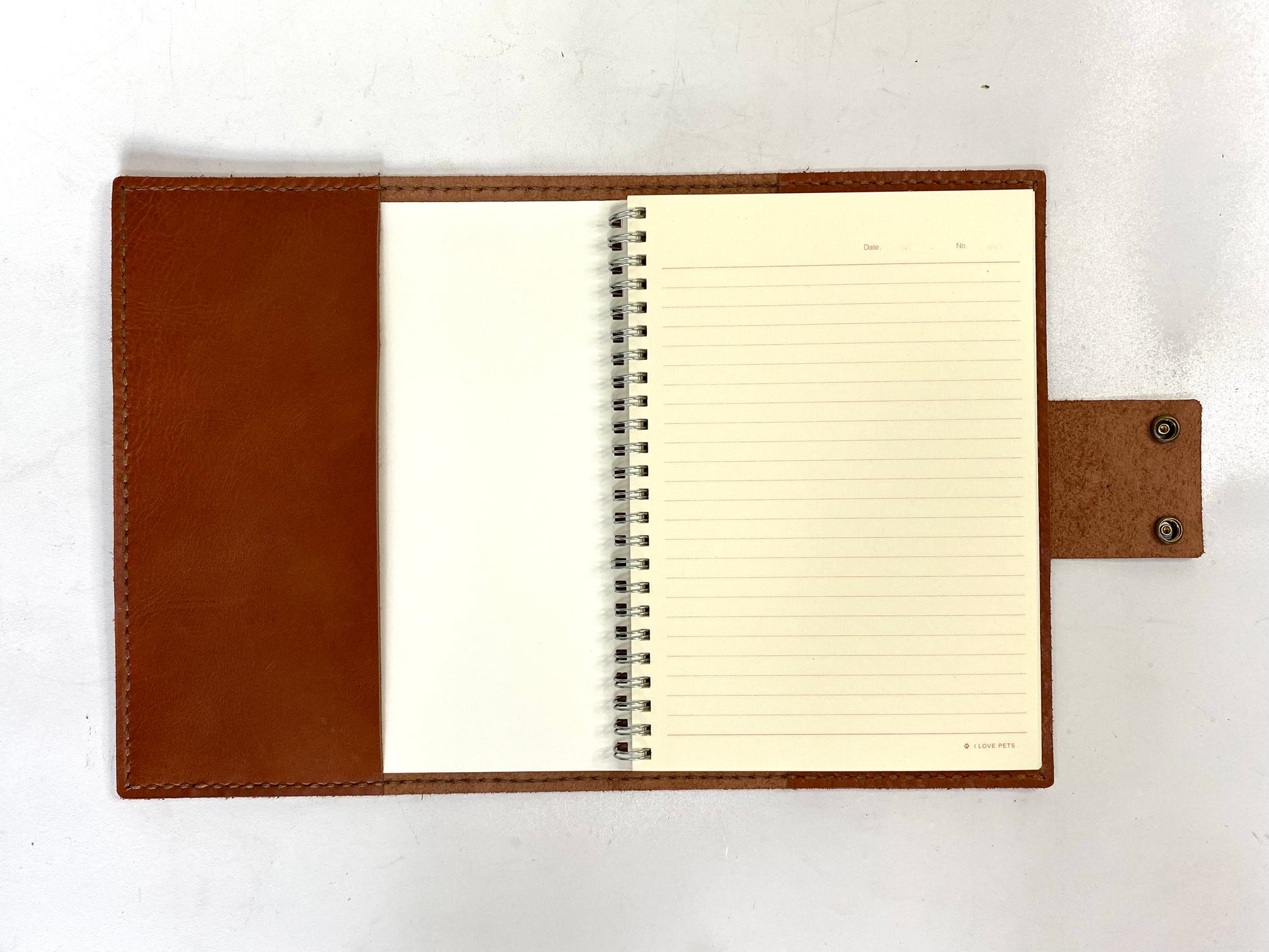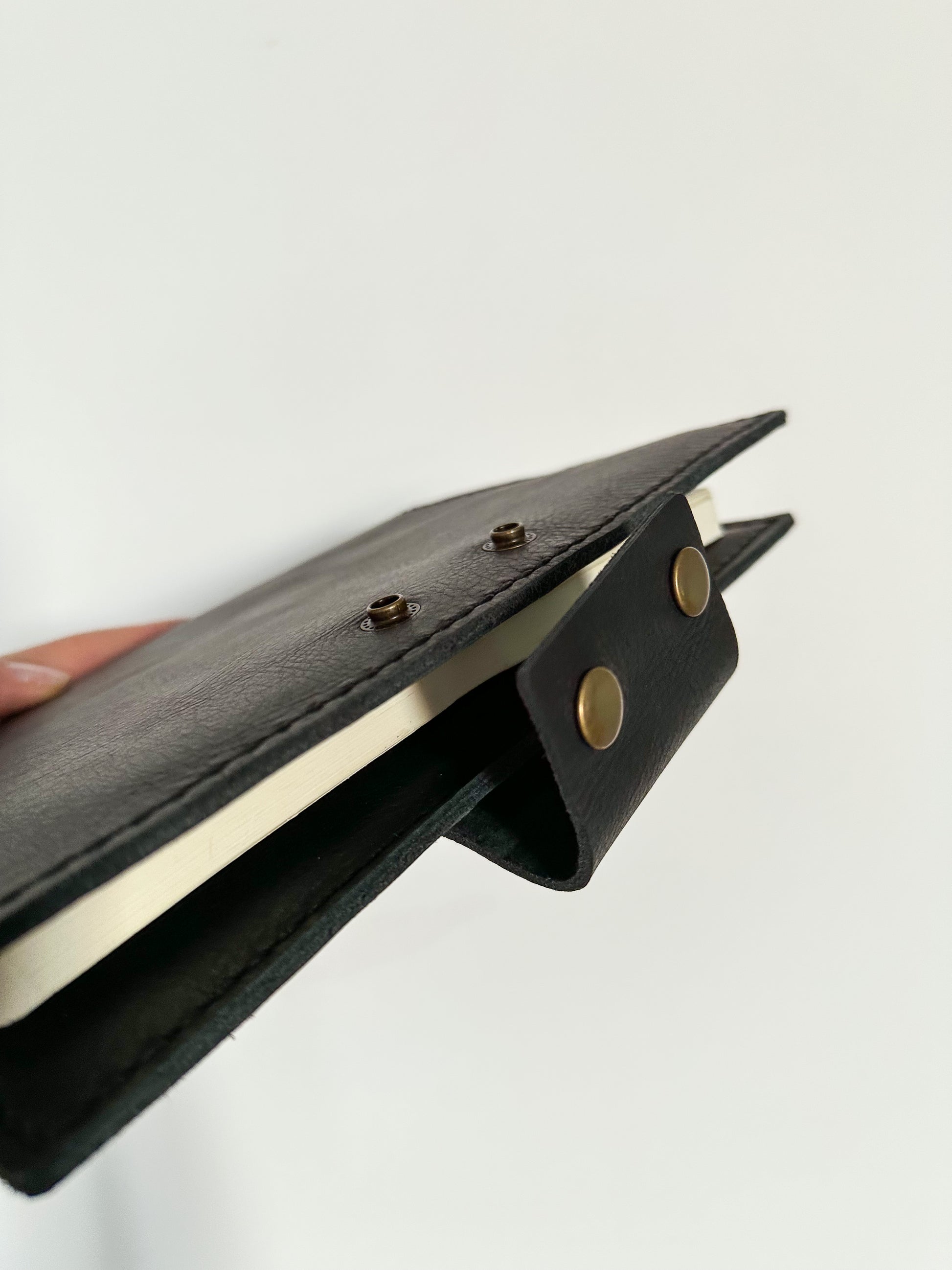 A5 Portfolio or book cover in pre-dyed bovine leather left unlined to showcase the robust, luxurious full-grain leather. A5 size, portrait orientation with left hand hinge (please contact us if you would prefer a landscape orientation). Custom sizes and configurations available on request.