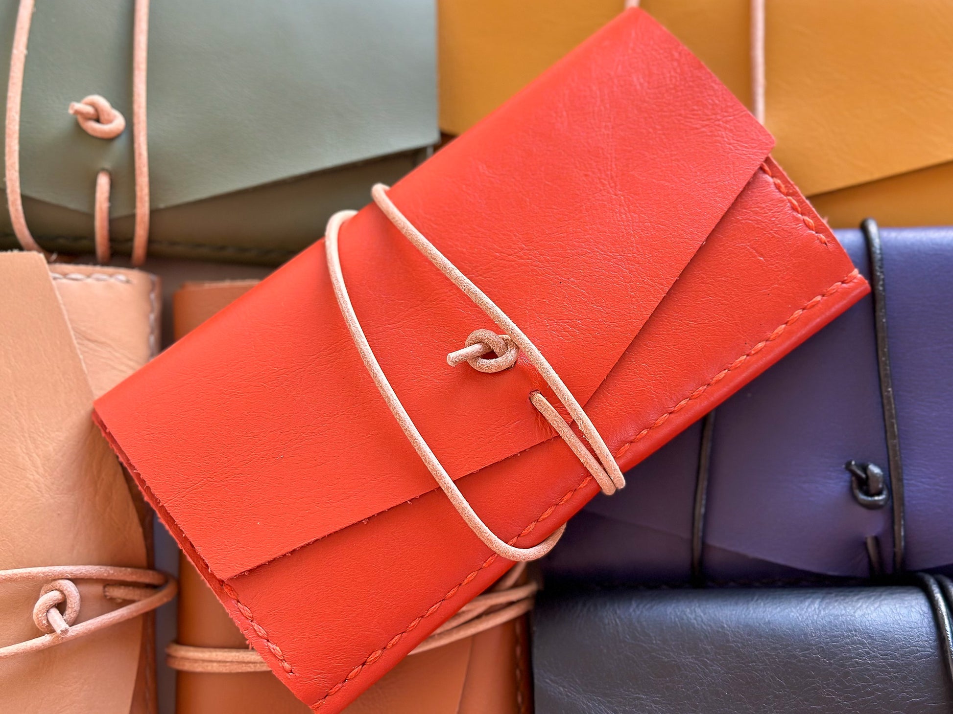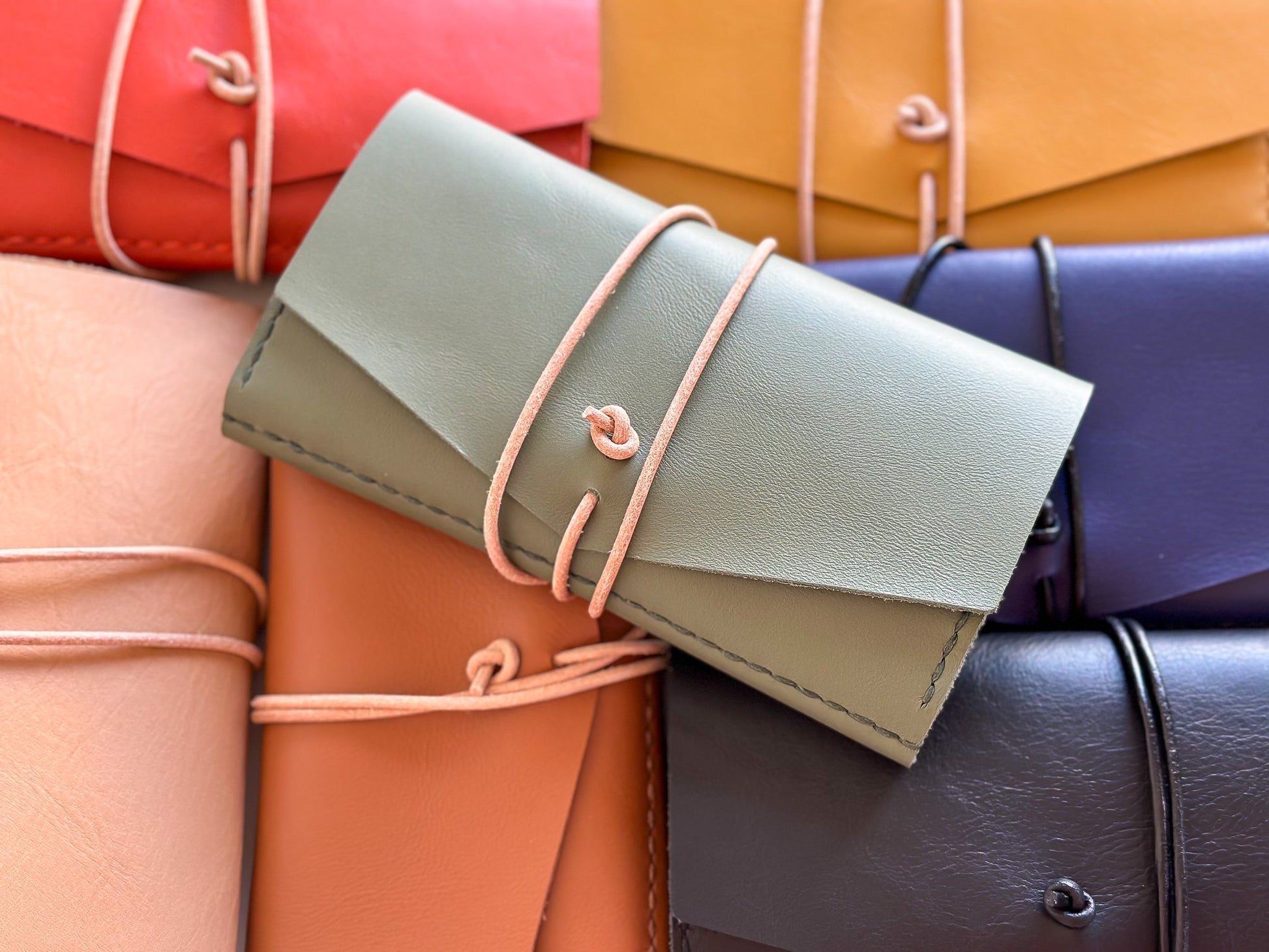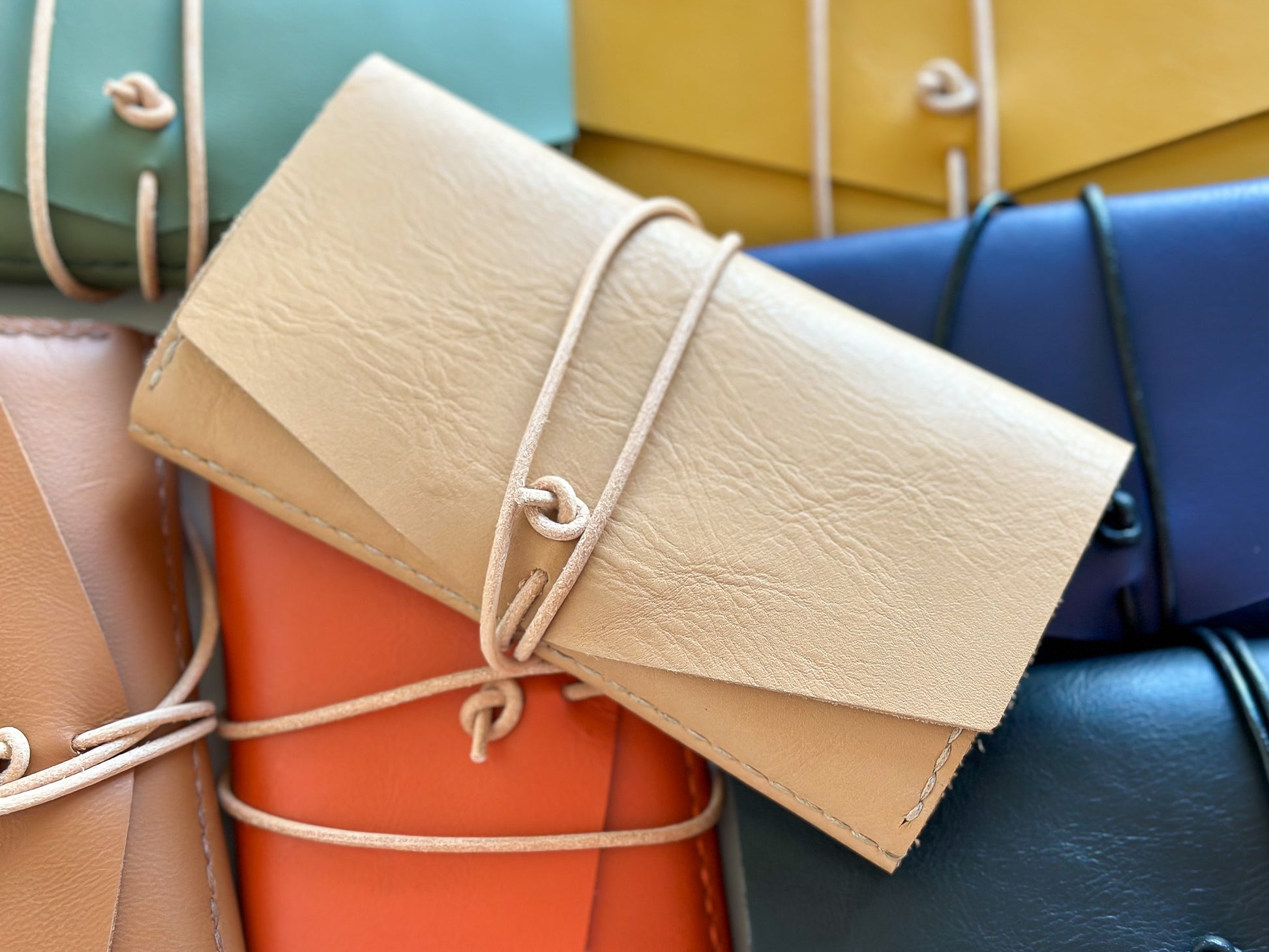 A versatile jewellery holder which features two pockets in addition to the main pouch and a strap for looping chains onto, threading through rings and with holes for holding earrings. The wrapping style and securing thong ensure your jewellery will not fall out inadvertently. The perfect travel companion.
