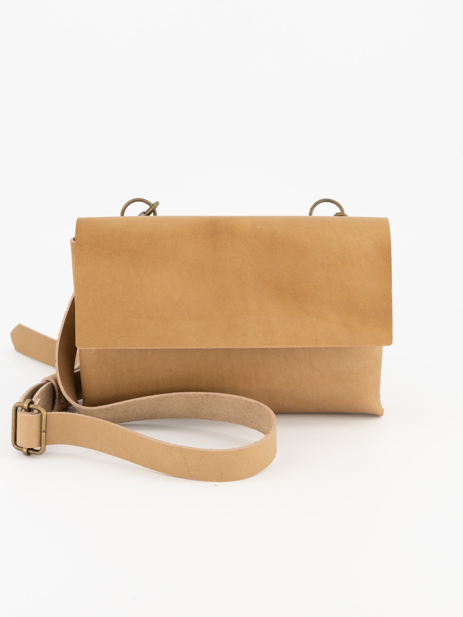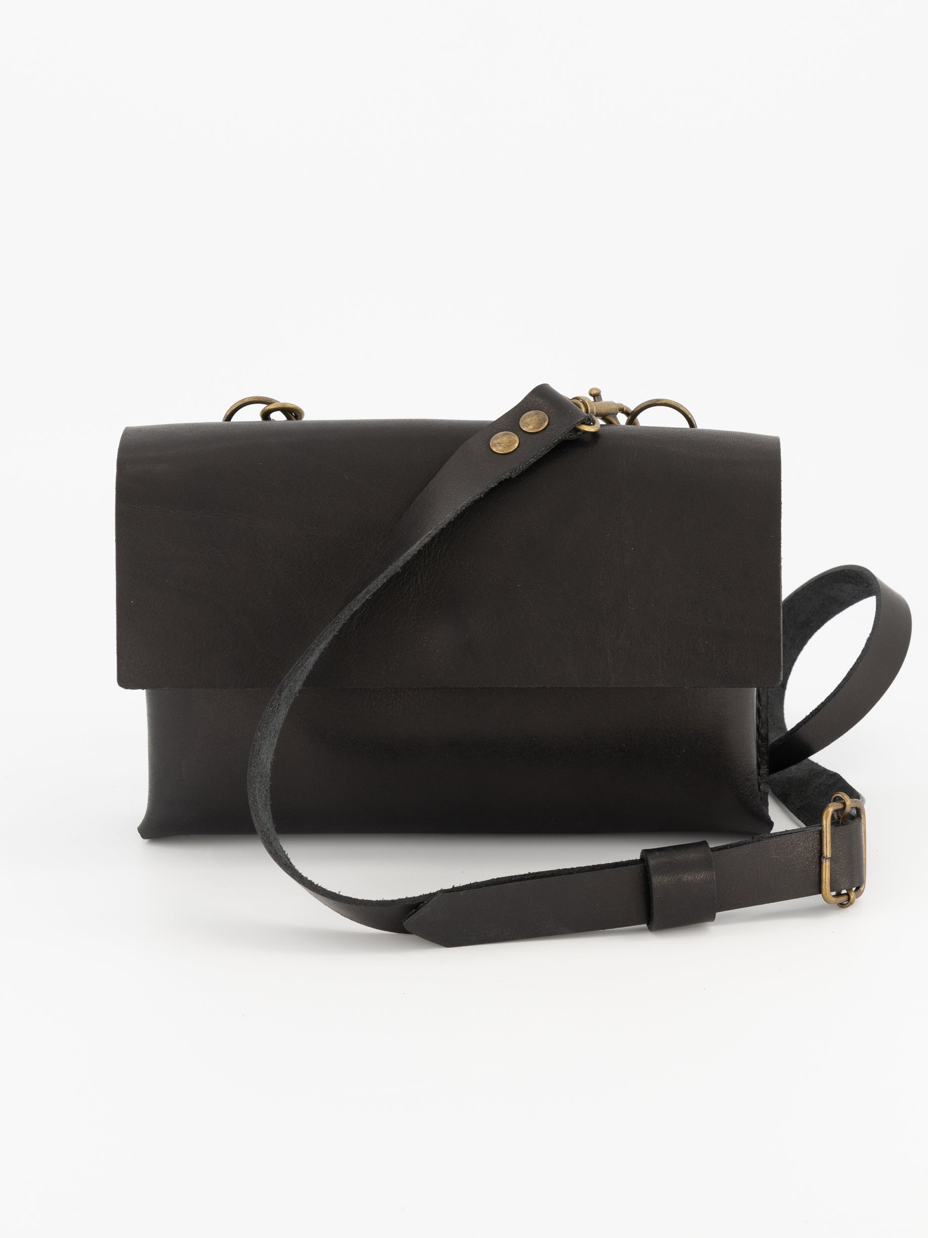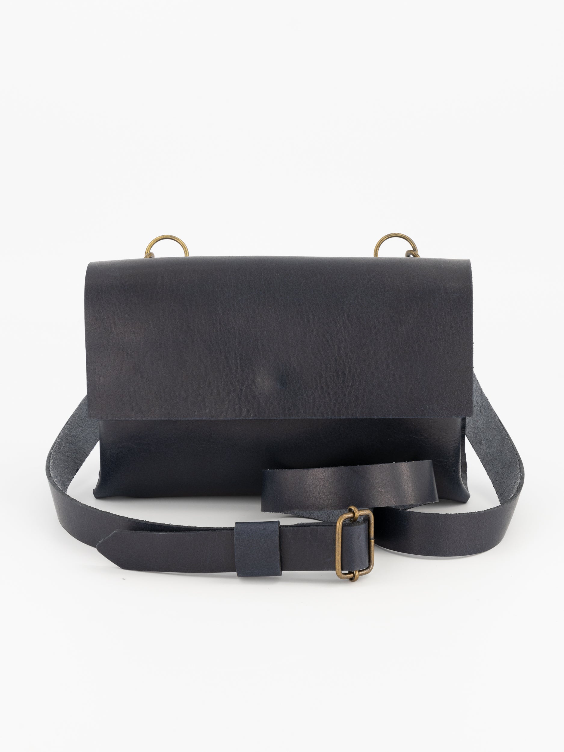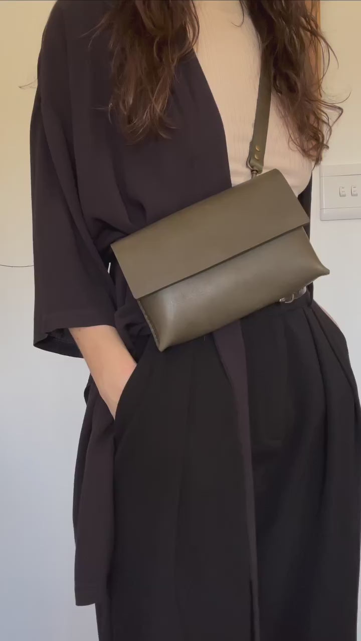 This bag can be worn either as a cross body sling or around the waist thanks to the ring fasteners that the strap clips onto. The strap is easily adjusted by means of a slider to ensure a perfect fit. There is an inner pocket and the flap is held closed by a magnet.