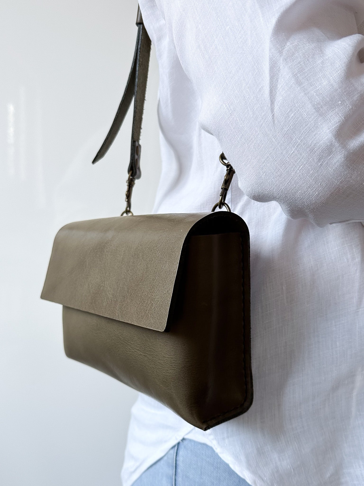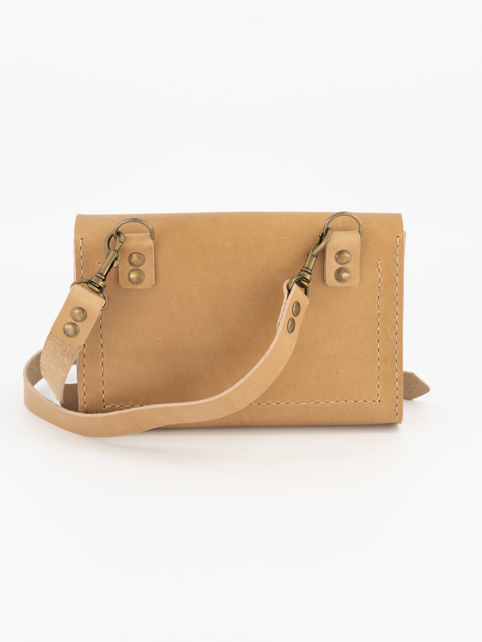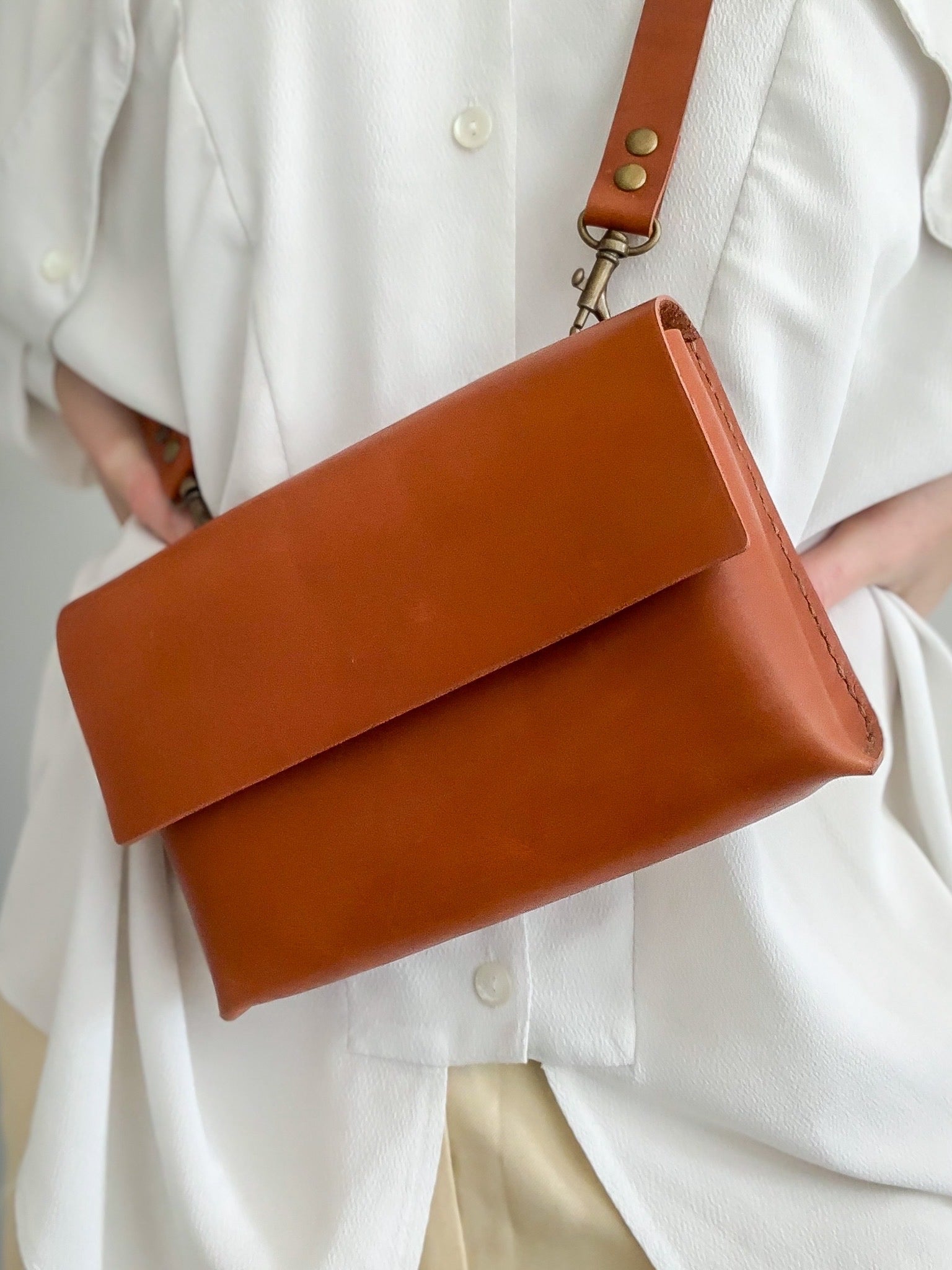 This bag can be worn either as a cross body sling or around the waist thanks to the ring fasteners that the strap clips onto. The strap is easily adjusted by means of a slider to ensure a perfect fit. There is an inner pocket and the flap is held closed by a magnet.