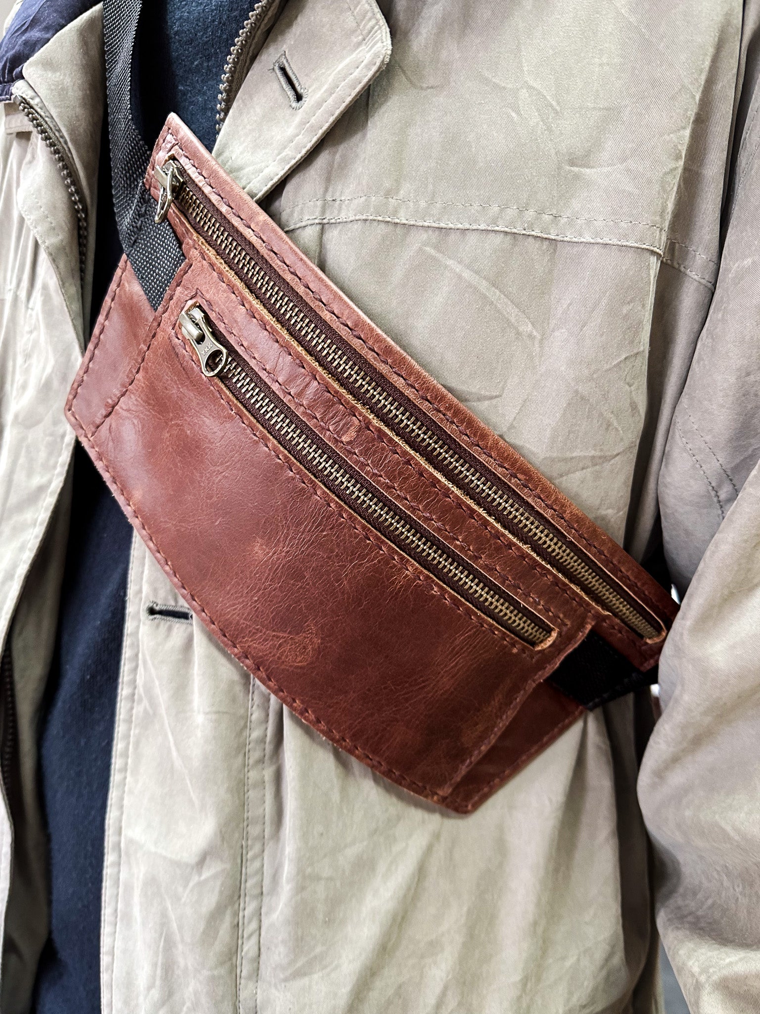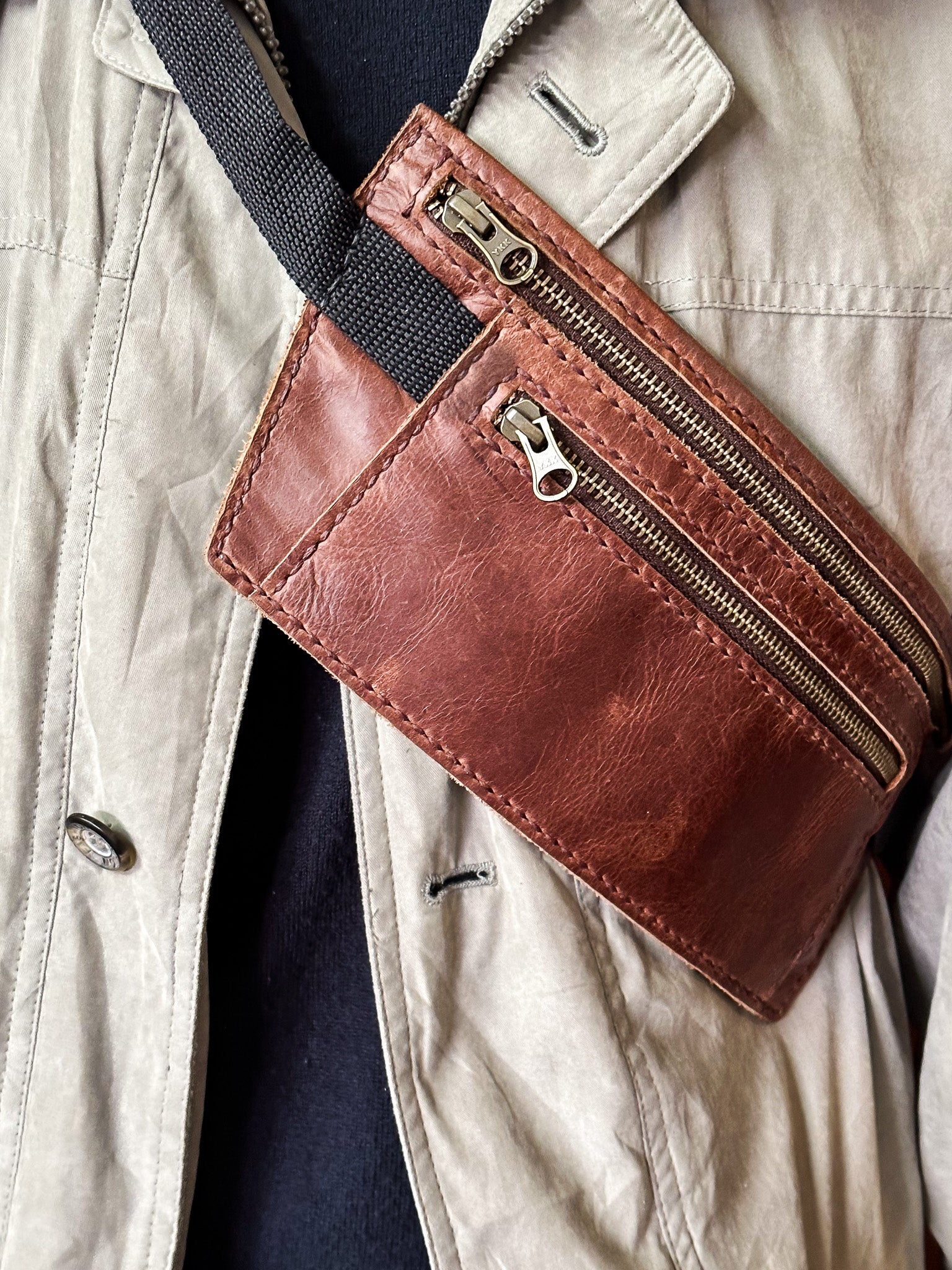 The Loxton is a handy and low profile moonbag that can be worn cross-body or at the waist. Its versatile and discrete shape can be worn under a jacket or take the more prominent position over it. It features two compartments, each secured by robust, world renowned YKK zip and sliders. Made from full grain leather with adjustable webbing strap, the Loxton is a trusty and comfortable companion.