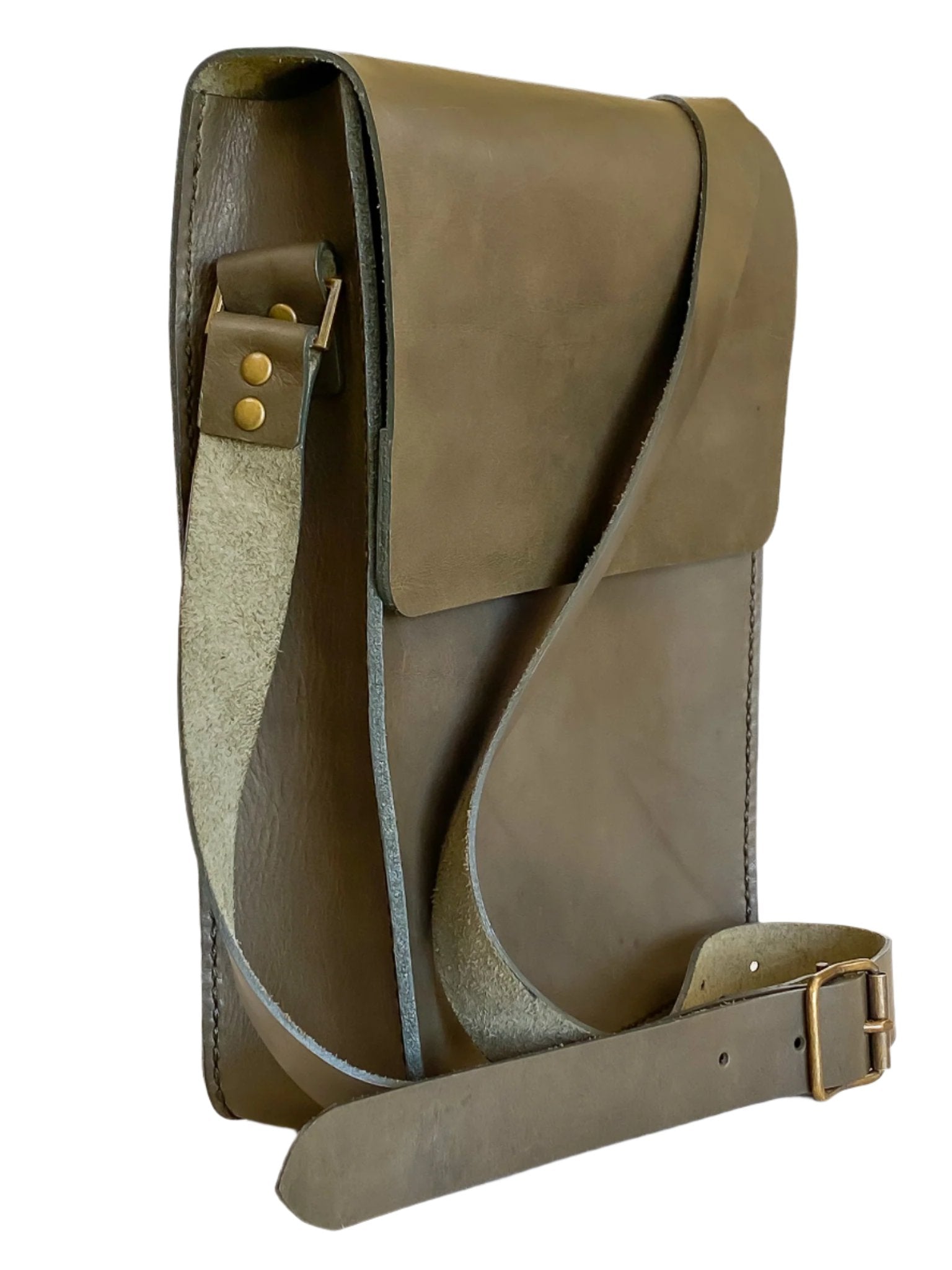 An A4-sized contemporary messenger bag, handmade and hand-stitched from full-grain bovine leather and left unlined to add to the authenticity. This bag is an elegant rework of the traditional messenger bag. There is an inside pocket and the closing flap is secured with a magnet.