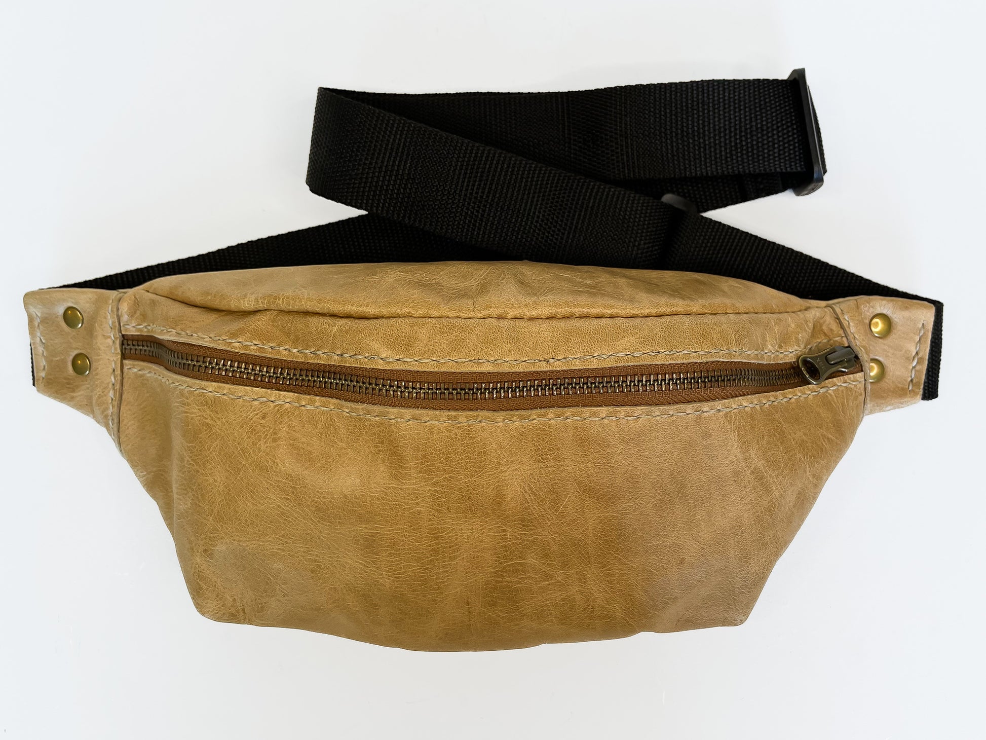 This bag can be worn either as a cross-body bag, around the waist as a moonbag or as a tightly cropped chest bag. The strap is easily adjusted by means of a slider to ensure a perfect fit. There is an inner pocket and the flap is held closed by a robust YKK zip. This is the version with the softer, more pliable leather which creates a flatter, less prominent profile.