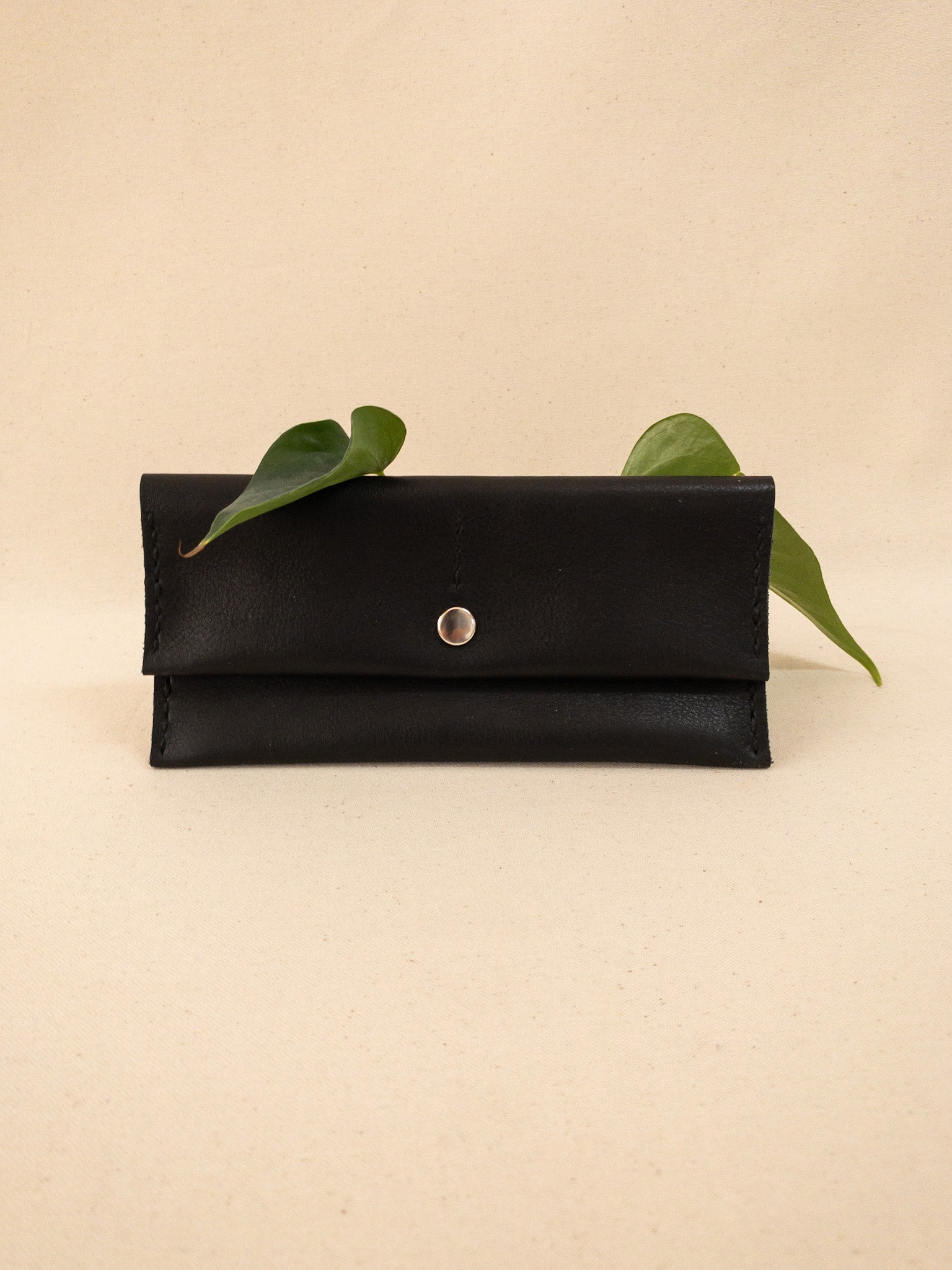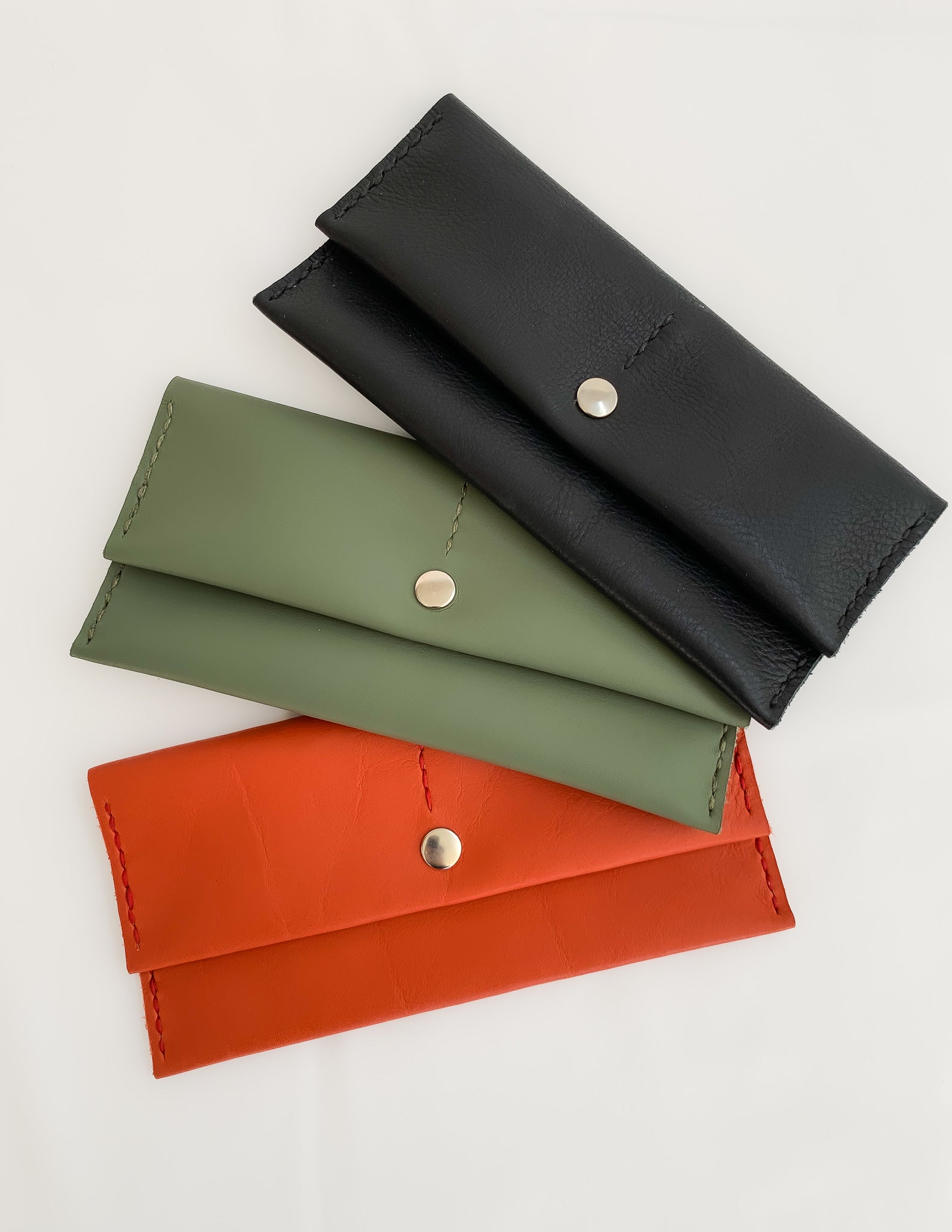 Our Sanna Leather Phone Wallet is made with today’s modern lifestyle in mind. One half for your phone and the other to hold a couple of credit cards. It is handmade from full-grain bovine leather and attractively hand stitched. A press stud holds it closed.