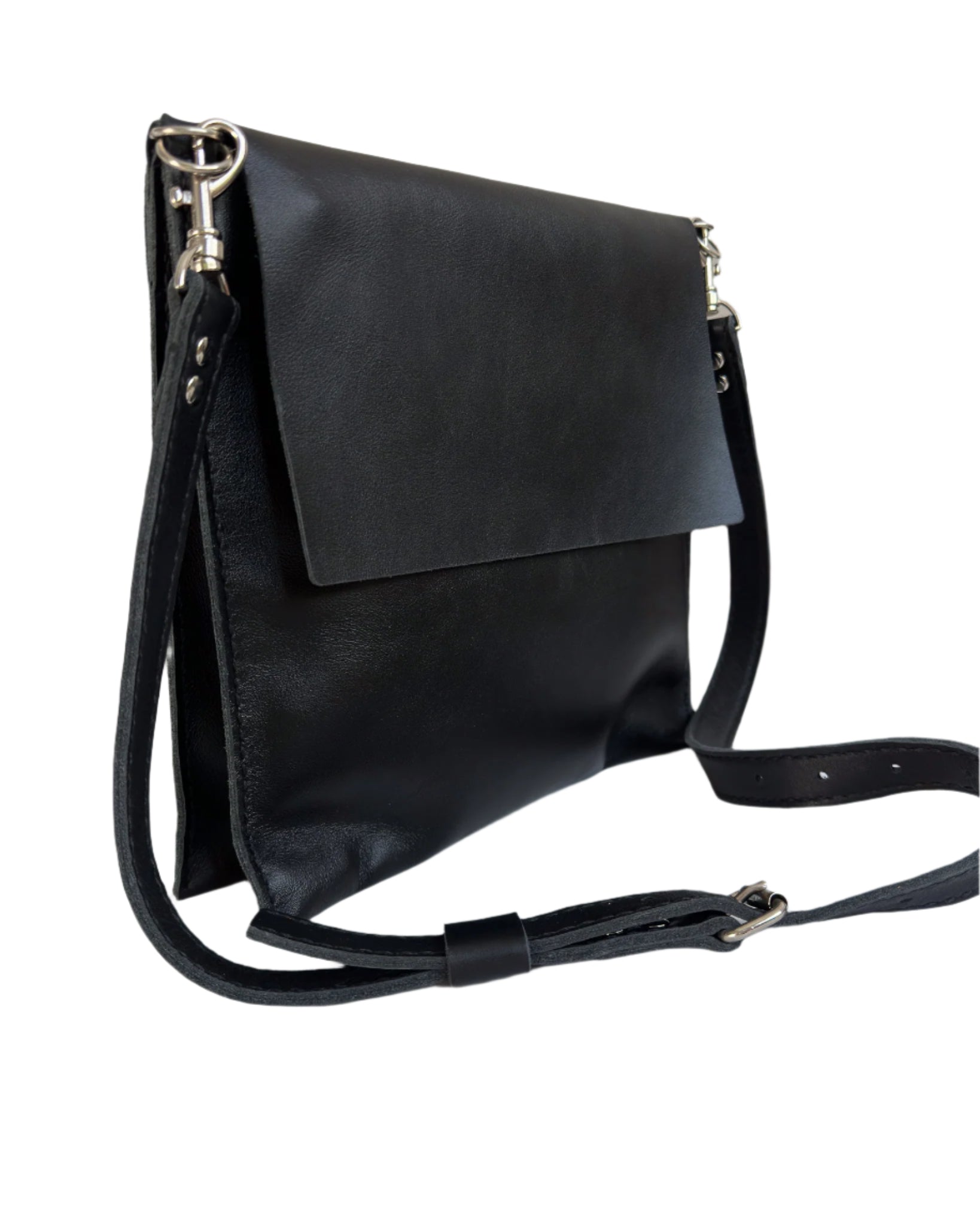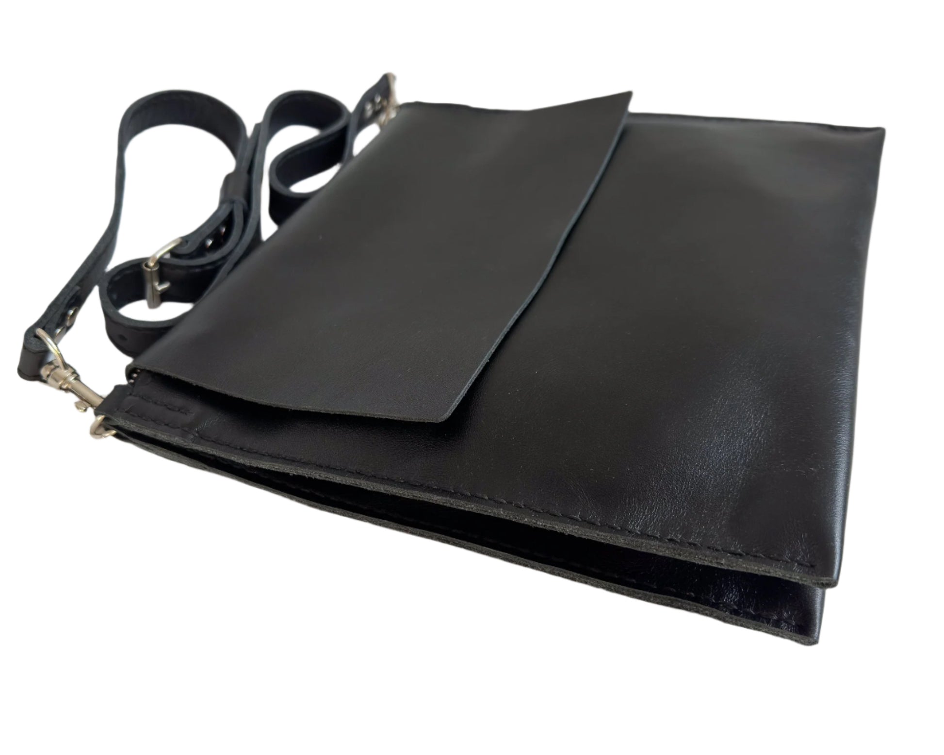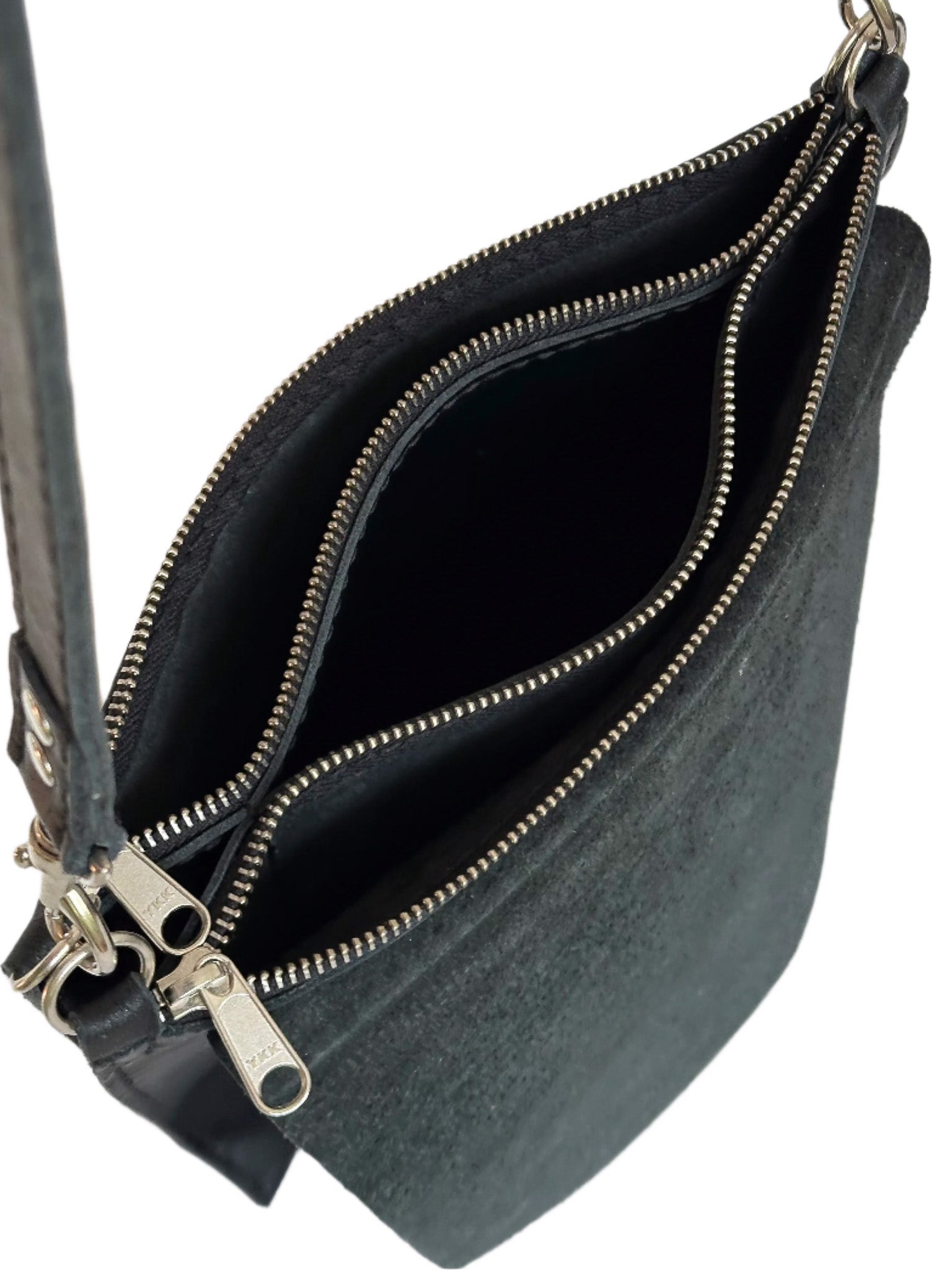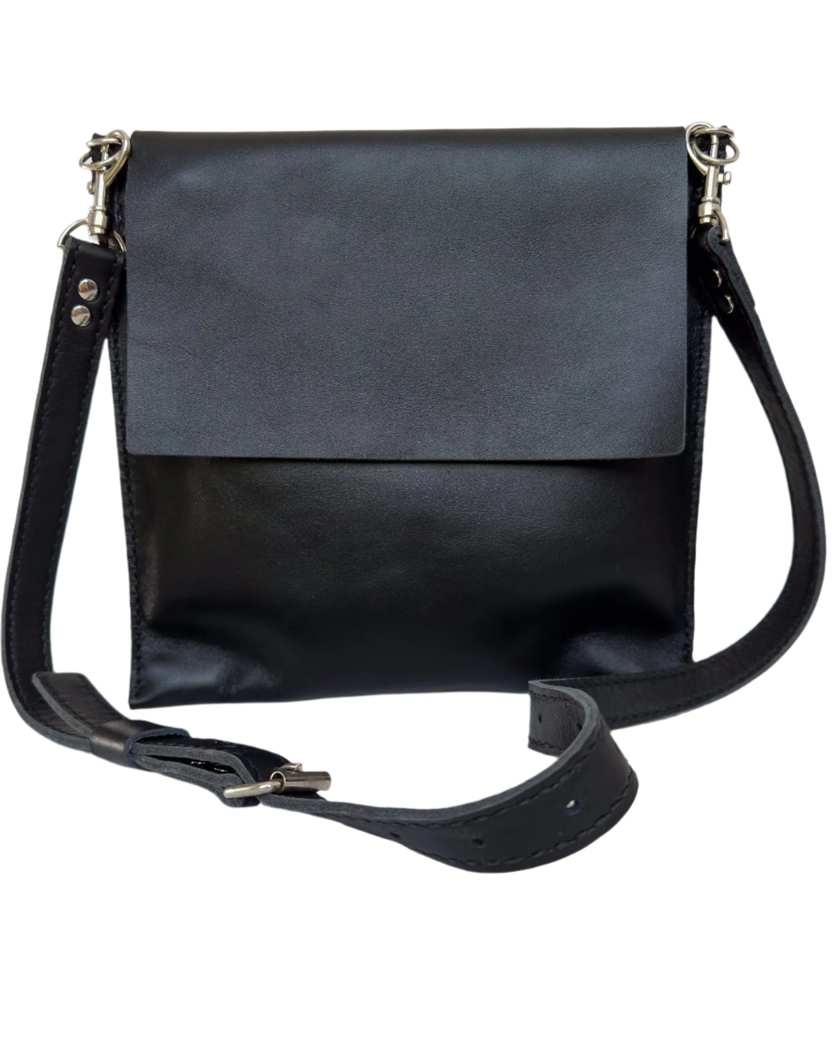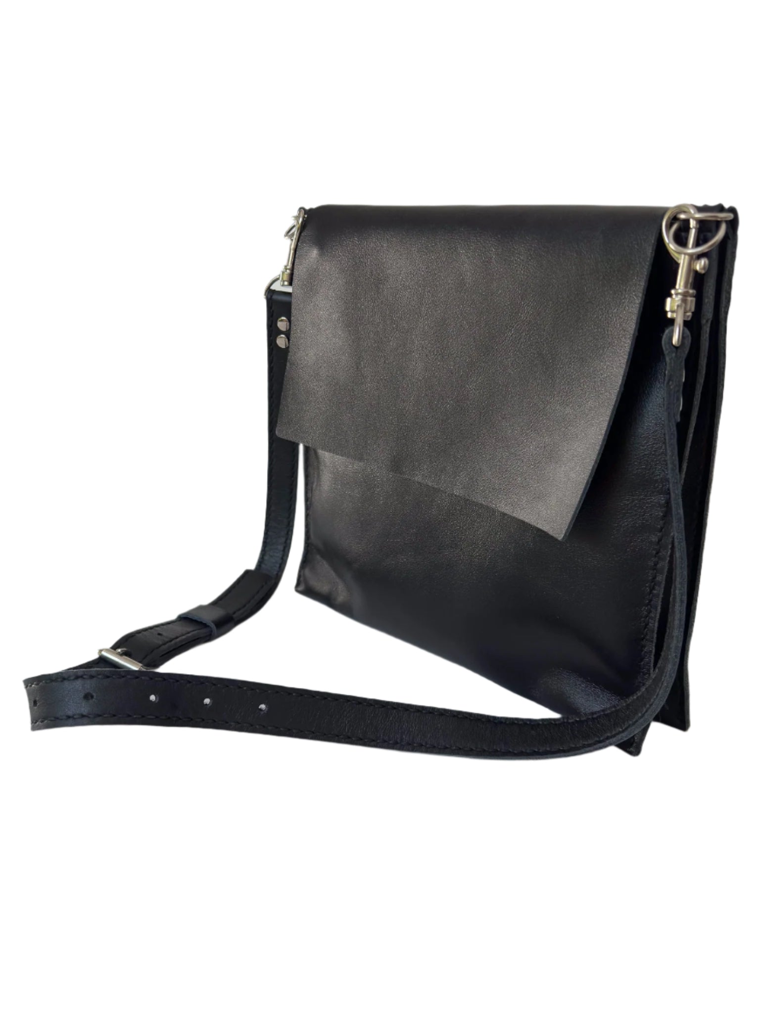 We’ve made a stylish, practical everyday bag with a small profile yet big carrying capacity. It consists of the two main zipped compartments, a central unzipped compartment for quick access items and one big inner pocket. The bag is sized big enough to accommodate a tablet device. The strap is sturdy and adjustable.
