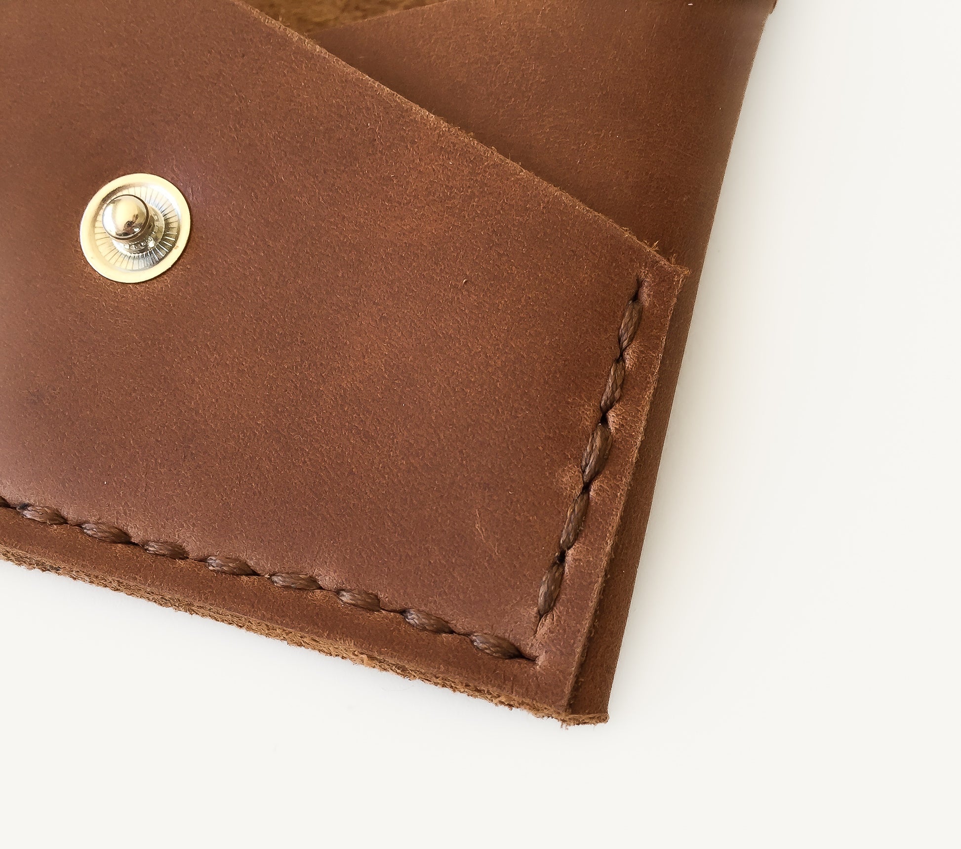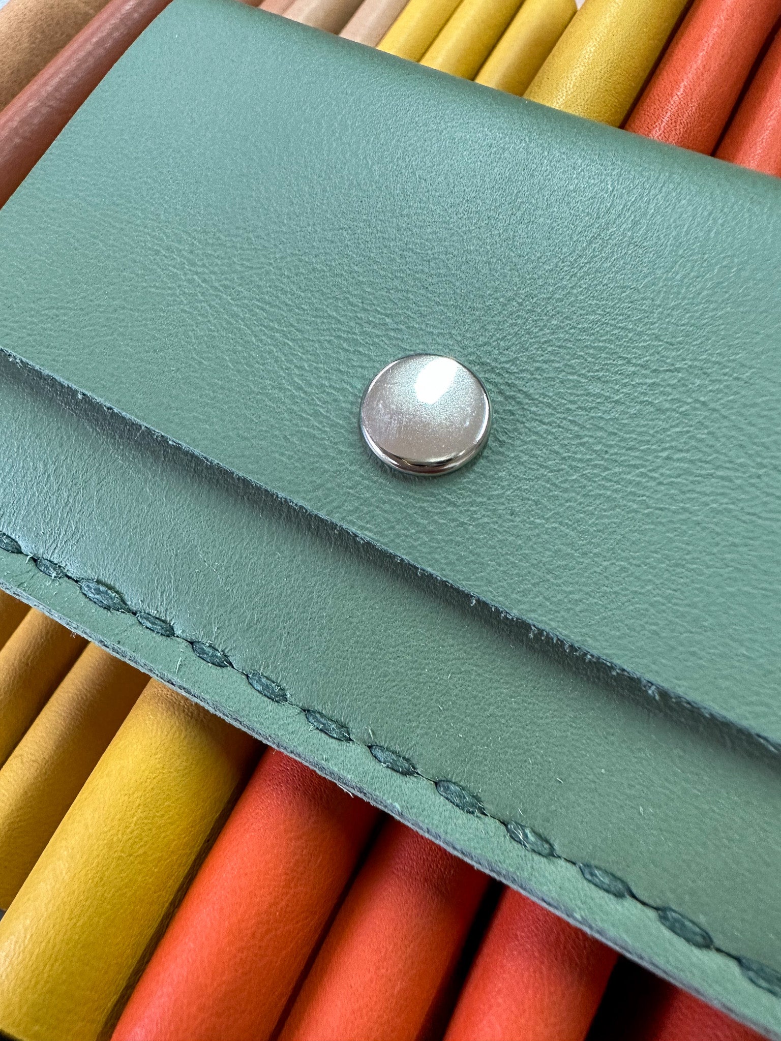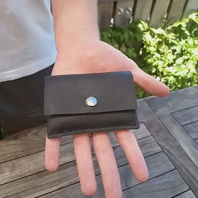 A minimalistic unisex wallet made from full-grain bovine leather. This modern style wallet holds a surprising amount whilst maintaining a small, slim footprint. The ideal solution when space is an issue. No more bulging pocket or weighed-down handbag, pack only what you really need. Can hold a number of credit cards as well as folded notes. Handmade and hand stitched.